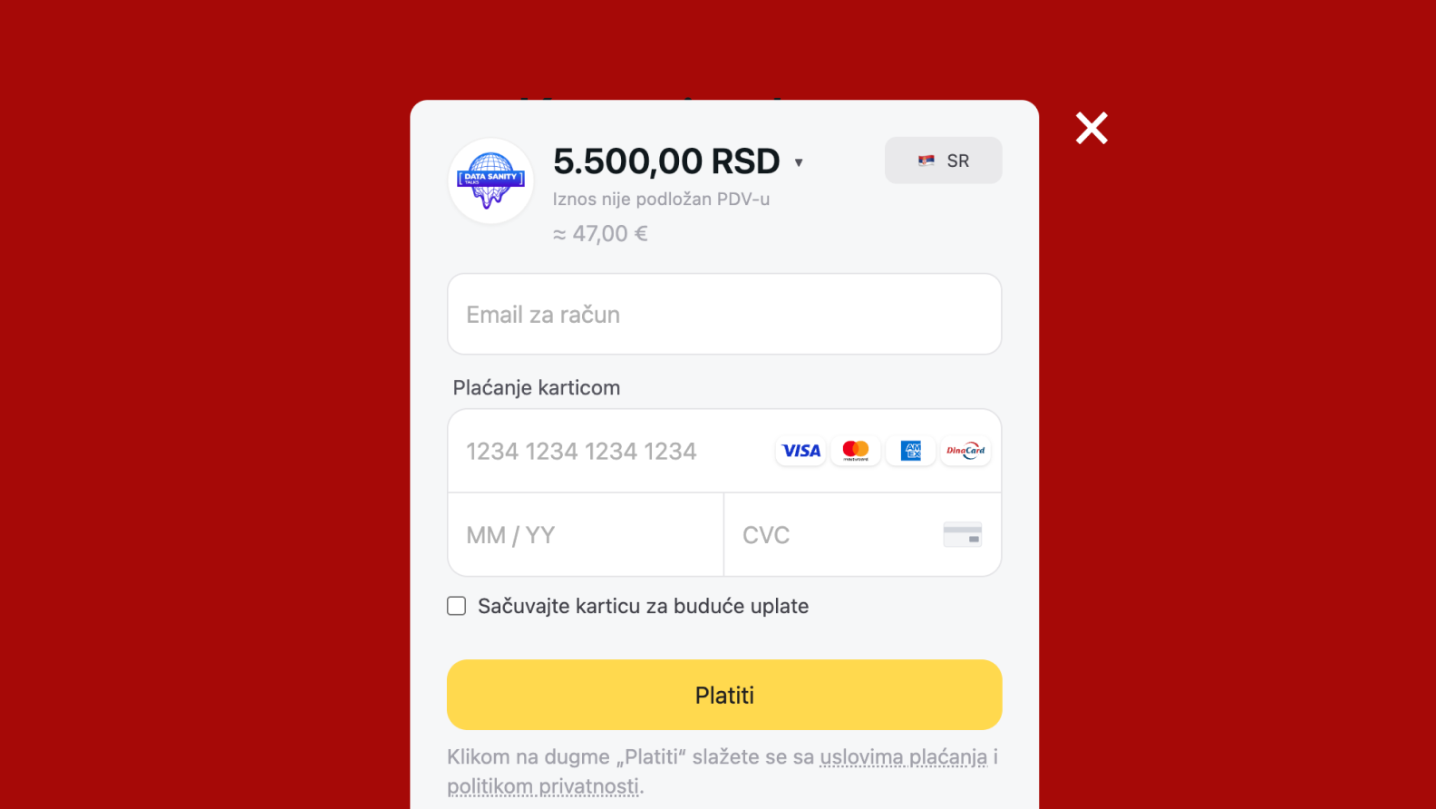 Tüm işlemler Banca Intesa aracılığıyla gerçekleştirilir — Sırbistan’daki en büyük ve güvenilir bankalardan biridir. Bu, her ödeme için güvenlik sağlar.